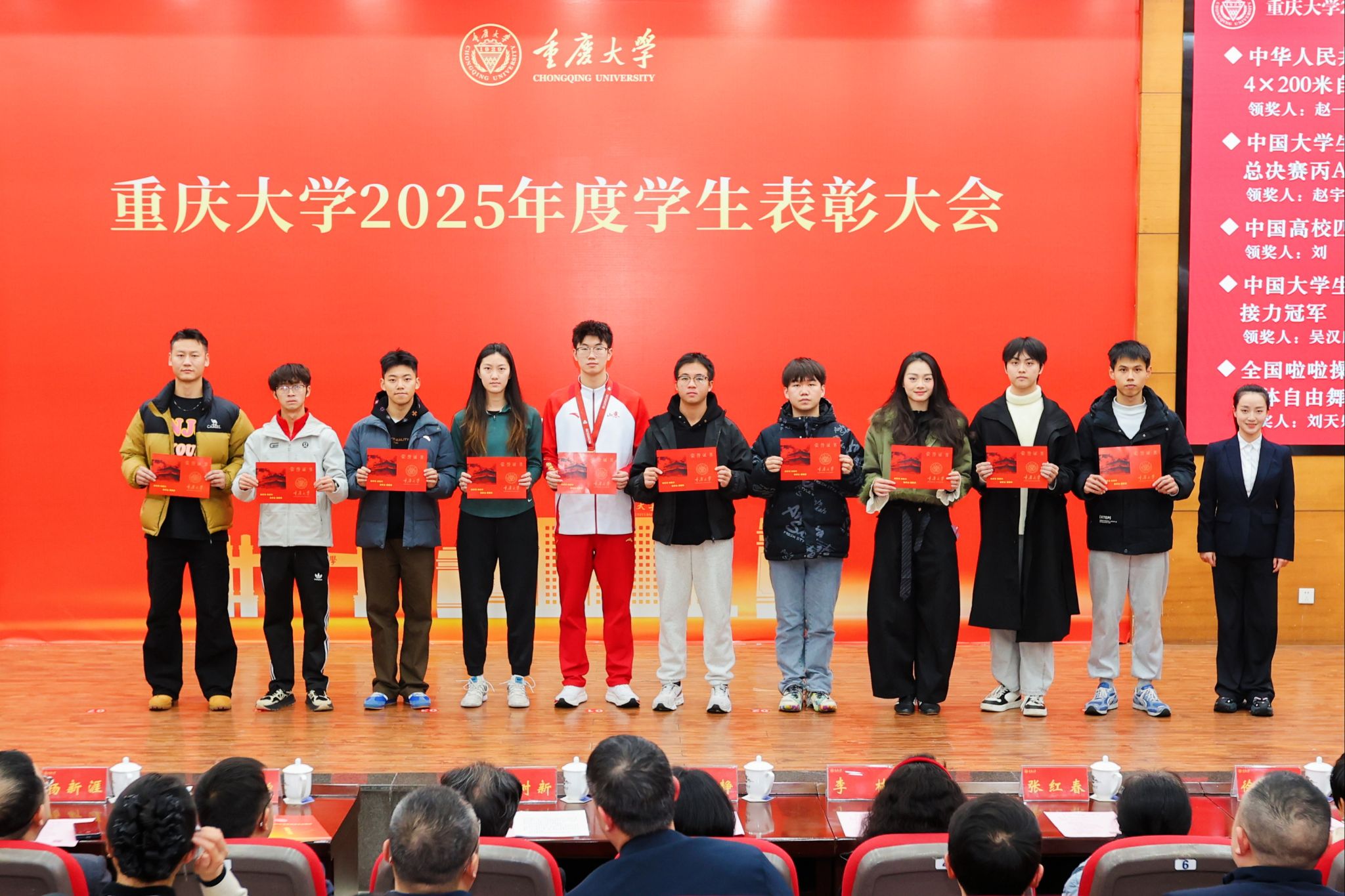 12月25日下午,重庆大学2025年度学生表彰大会在A校园民主湖报告厅隆重举行。校党委书记王树新,副校长杨俊,党委常委、统战部部长李学静等领导出席大会。表彰大会由党委学工部部长韦迎春主持。王树新在讲话中指出,2025年学校坚持以习近平新时代中国特色社会主义思想为指导,扎实推进“双一流”建设,在拔尖创新人才培养、高水平科研攻关和服务国家战略等方面取得了一系列标志性成果。他代表学校向受到表彰的先进集体和优秀个...