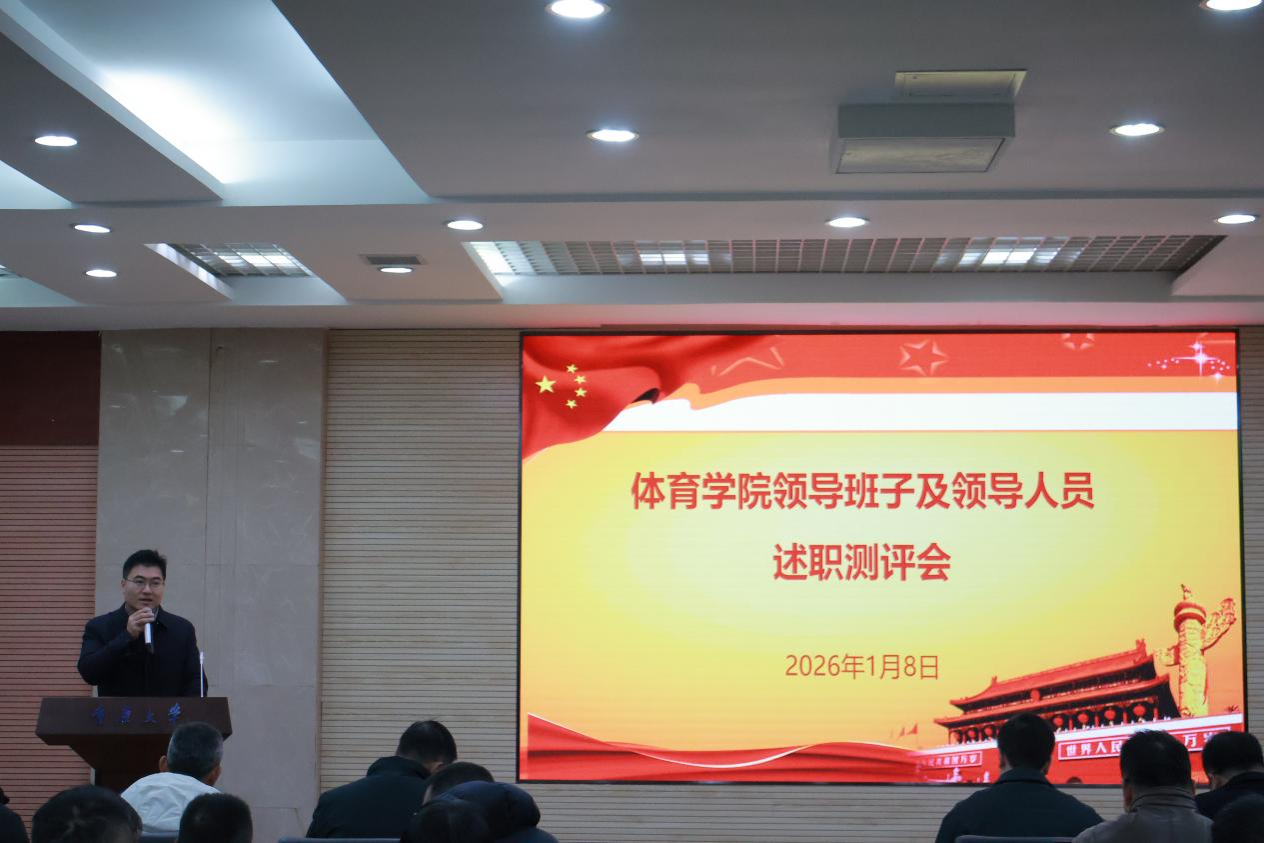 为扎实推进干部履职考核与师资队伍建设,全面总结工作成效、凝聚发展共识,1月8日,体育学院在虎溪校园DZ125会议室召开领导班子及领导人员述职测评会,人事处副处长赵欢、党办校办总值班室主任刘彬成到会指导,学院全体教职工参与会议。 会议伊始,赵欢代表学校对本次述职测评的目的与要求作说明,强调要以客观、负责的态度完成评议,助力学院干部队伍建设与工作提质。 随后,体育学院党委书记田辉代表学院领导班子作述职,从党...