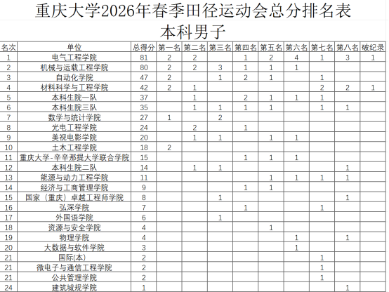 重庆大学2026年春季田径运动会暨体育文化节圆满落幕